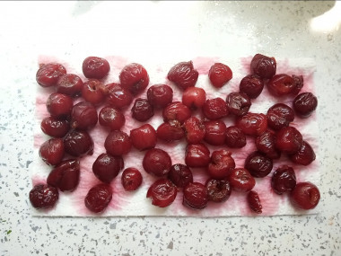 Вишню вымойте, обсушите и удалите косточки. Чистый вес должен получиться примерно 500 г, поэтому берите вишню с запасом. Можете использовать вместо свежей вишни замороженную или консервированную. Замороженные или консервированные ягоды нужно хорошо обсушить, чтобы тесто хорошо пропеклось вокруг них.