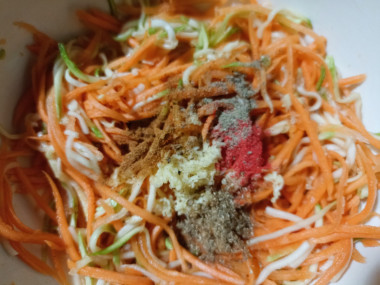 Вместо молотого кориандра возьмите готовую приправу для корейских салатов по желанию.