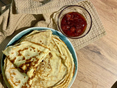 Ужин с подругой превратился в настоящий праздник вкуса благодаря этому рецепту! Блины получились просто идеальными - тоненькие, мягкие и ароматные. Политые нежнейшим вареньем из клубники, они просто тают во рту.