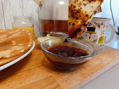 Классика: со сметаной, вареньем или мёдом.
