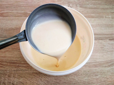 С небольшим количеством молока тесто получится очень густым, так и надо - тесто такой консистенции легче размешать до однородности. Именно за счет этого в нем не будет комочков.