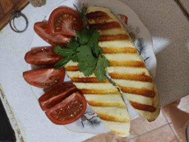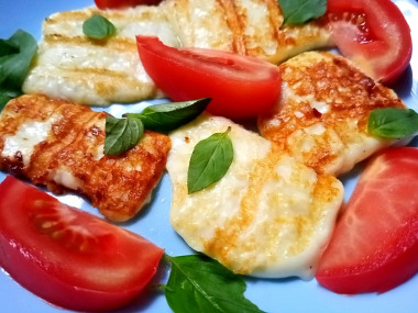 Буквально сегодня готовила завтрак и смотрела ленту на любимом сайте, а тут появился новый рецепт. В холодильнике лежала брынза, которую домочадцы уже не хотели есть. Вот и приготовила им брынзу на сковороде жареную) У меня брынза была уже нарезана произвольными кусочками, и поэтому жарила то, что было) А всего то нужно обмазать кусочки растительным маслом и выложить на сковородку. Я взяла гриль, чтобы были поджаристые полосочки. Брынза на сковородке стала как бы расплавляться, даже заволновалась, что она полностью расплавится. Но кусочки легко перевернулись при помощи вилки. А после остывания вообще стали такими же по консистенции как до обжарки. Вкуснее всего жареная брынза именно горячая с помидоркой и базиликом в прикуску) Очень вкусно и быстро! В следующий раз попробую с мёдом.