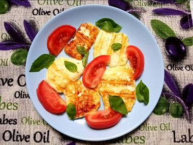 Переложите горячий жареный сыр на тарелку и сразу подайте к столу. Сыр можете подавать в сладком виде с медом и орехами либо в соленом - с листиками свежего базилика и помидорами черри. Приятного аппетита!