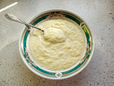 Муку решила не давать, просто слила 2 столовые ложки сока из тёртого картофеля, чтобы не было слишком жидко. Вспомнила, что когда-то моя мама ещё добавляла столовую ложку сметаны, решила и сама так сделать.