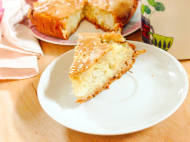 Готовый пирог немного увеличится в размере и станет аппетитного золотистого цвета. Извлеките его из духовки и немного остудите. Извлеките пирог из формы и подавайте к столу.