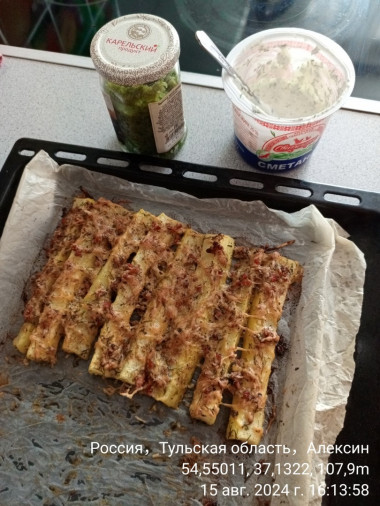 Хотела побаловать себя и мужа, при этом сохранить баланс между полезным и вкусным, по этой причине оставалась на кабачках с сыром. Объеденье Смущен