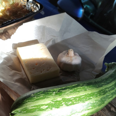 Приготовьте все ингредиенты по списку. Кабачки для рецепта лучше взять молодые с тонкой кожицей. Сыр подойдёт любой на ваш вкус. У меня в этот раз покупной натёртый сыр Гауда. Чтобы духовка успела нагреться до нужной температуры, включите её заранее (минут за 10-20 до начала приготовления).