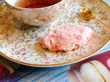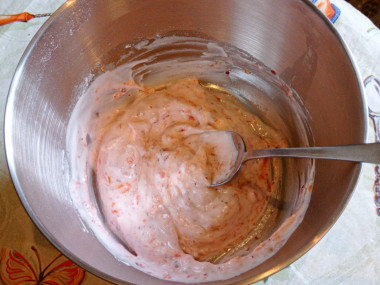 На один белок я взяла по 40 граммов клубники и нектарина. Алкоголь не добавляла, поскольку готовила для детей. Формочек маленьких у меня нет, поэтому для запекания просто выложила их на пергамент (как безе). Запекала суфле 12 минут и ещё на три минуты оставила его в выключенной духовке.