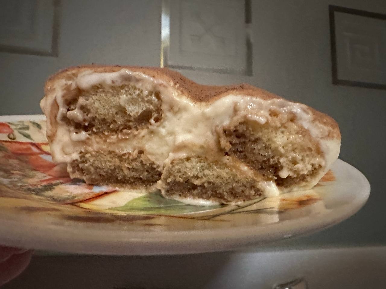 : кофе к сожалению был не вареный, а растворимый, его я положила на стакан 300 мл всего 2 чайные ложки. Вкус был, но мне кажется не такой ярко-выраженный, в следующий раз либо сварю, либо положу в 1,5 раза больше. Следующий мой недочет - емкость куда нужно было перелить кофе, я взяла не с плоским и ровным дном, а с сужающимся, для второго ряда, когда количество кофе уменьшилось, мешало нормально обмакивать печенье. Далее как и указал автор нужно окунать печенье действительно на 1с, я замешкалась на чуть больше и первое печенье просто превратилось сразу в руках в кашу, так что дальше манипуляции с печеньем были ну очень быстрые. Для следующего раза возьму сахара в половину от того, что брала (использовала 75гр, возьму не больше 40гр) - для меня это слишком сладко, хотя я и люблю сладкое. Здесь нужно каждому пробовать однозначно, как отметил автор. И яйцо скорее всего 1 точно уберу (не 3, а 2 возьму) потому что крема получилось многовато. Форму тоже нужно приобрести полностью прямоугольную - у меня стеклянная и дно скошено, поэтому в первый ряд влезло 3 печенья подряд, а во втором - можно было уместить уже 4 штуки, поэтому когда делала порции, немного ряд приупал