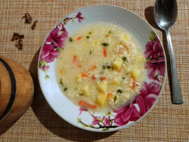На первое решила приготовить кулеш с салом пшённый. Для этого хотела использовать копчёную грудку, но в последний момент мне захотелось приготовить легкий, постный вариант, и добавлять ее не стала.