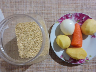 Пока варится пшено, картофель вымойте, очистите и нарежьте кубиками. Они не должны быть слишком крупными, чтобы успели свариться за то время, пока доваривается пшено. Но и мельчить их тоже не нужно.