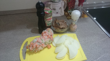 Морковь очистите и нарежьте тонкими кружочками. У меня морковки мелкие и тонкие, поэтому я взяла две.