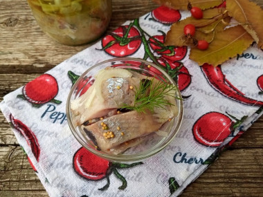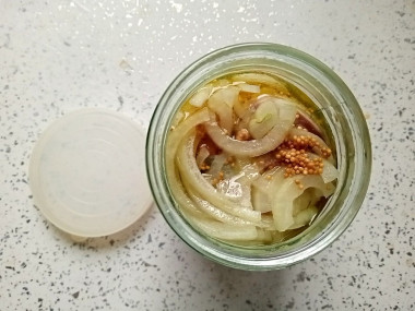 Маринованную сельдь по этому рецепту я приготовила из селедки домашнего посола. Так как моя рыба была уже солёной, соль в маринад не добавляла. Мариновала я филе от одной селедки. Но маринад развела на полную порцию, то есть по 100 мл. масла и уксуса. Масло взяла оливковое пополам с подсолнечным. Уксус разводила из эссенции, воспользовавшись калькулятором сайта. Горчицу взяла обычную домашнюю и добавила зерна. Селедку я укладывала в пол литровую банку, чередуя с луком. Маринада как раз хватило. На утро муж уже дегустировал селедочку с чёрным хлебом. Получилось вкусно, пряно и немножко остренько. Спасибо за рецепт!