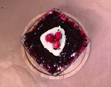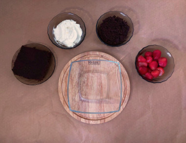Из шоколадного коржа стаканом вырежьте 8 кругов. Заготовки должны влезать в стаканчики, в которых вы будете формировать десерт.