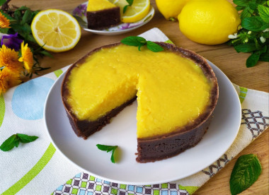 Сделала небольшой пирог на 4 порции, использовала всего 3 средних лимона, желатин не добавляла, а прибавила порцию крахмала. Все остатки от лимонов вместе с отцеженной цедрой с улетом ушли в чай 🙂