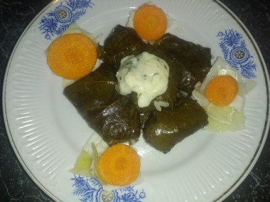 Что хочу сказать, вышло очень вкусное блюдо, ароматная начинка в тонких виноградных листочках, настоящий восточный деликатес.