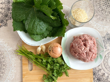 Как сделать толму армянскую? Для начала подготовьте ингредиенты для начинки. Мясо требуется без костей, только мякоть. Вместо мяса можете взять магазинный фарш в тех же пропорциях, но желательно, чтобы он был с минимальным количеством жира.