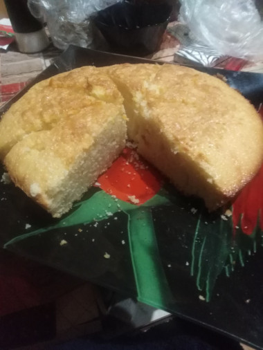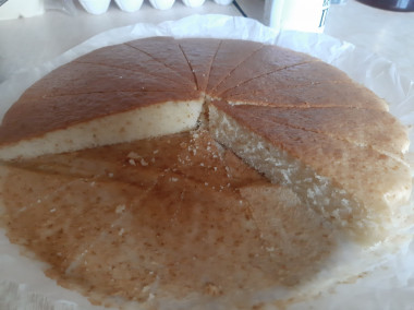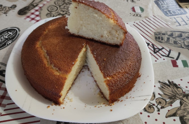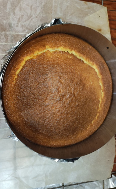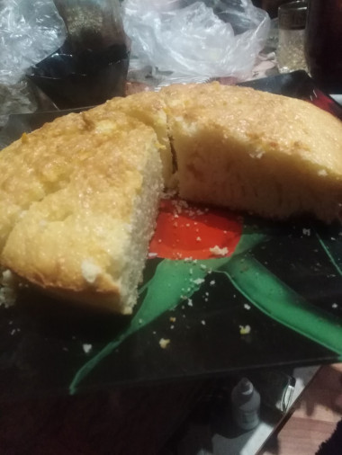 Строго соблюдала граммовку по рецепту, выпекала 40 минут в духовке, единственное не по рецепту – взбивала всё венчиком, без миксера, и манке дала 20 минут, а не 30) Выпекала в силиконовой форме, на всякий случай немного смазала ее маслом.