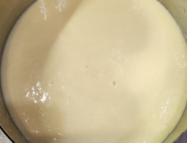 Вылейте теплое молоко в яичную смесь и перемешайте. Молоко не должно быть слишком горячим, иначе яйца свернутся.