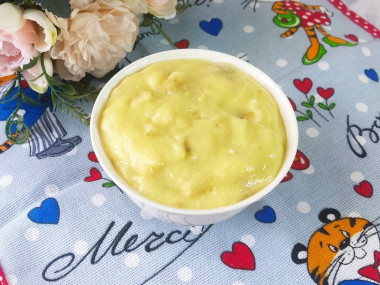 Вылейте измельченные бананы в горячий крем, перемешайте.
