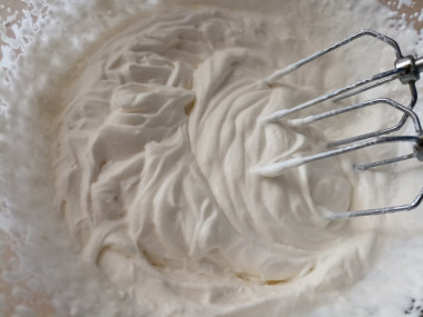 Взбейте сливки миксером до получения пышной воздушной нежной массы. Важно не перебить сливки, иначе они расслоятся и из них отделится масло. В правильно взбитых сливках след от венчика должен оставаться и не затягиваться либо затягиваться очень медленно.