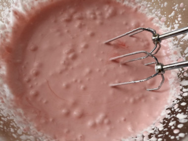 Масса разжижится и приобретет красивый нежно-розовый цвет.