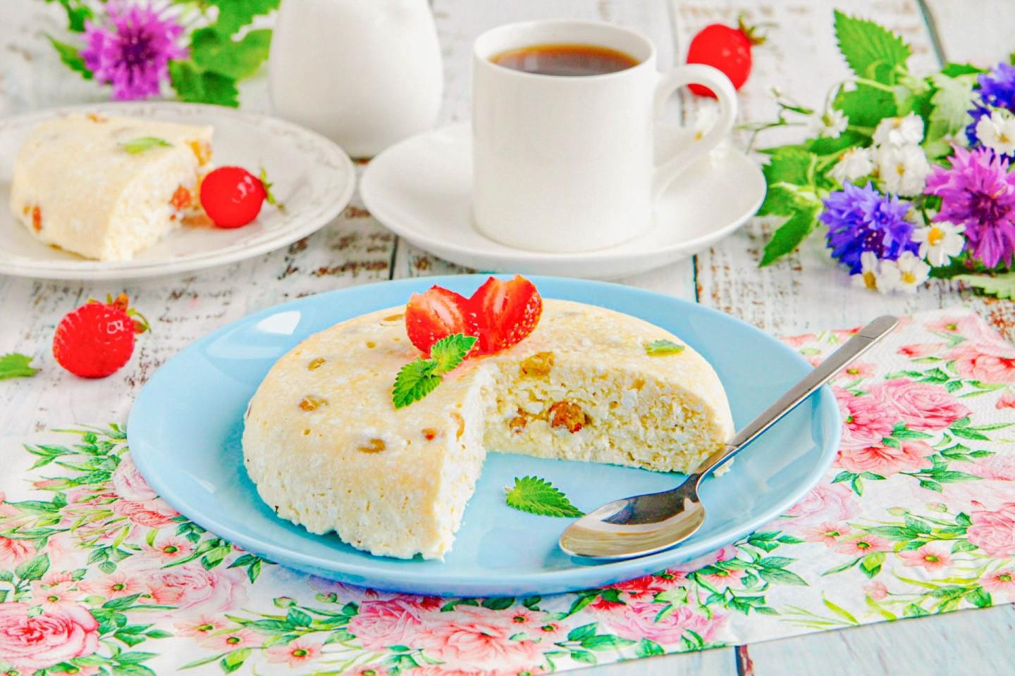 Эта творожная запеканка на завтрак — источник качественного белка и кальция из творога, а также витаминов из яиц и изюма. Она надолго дает чувство сытости, ускоряет метаболизм и является отличным вариантом для низкокалорийного и сбалансированного питания. Идеальный старт дня для детей и взрослых!