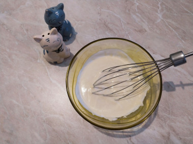 Слегка взбейте майонез венчиком. По консистенции он получится как густая сметана.