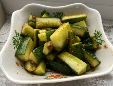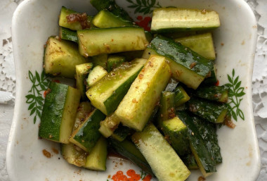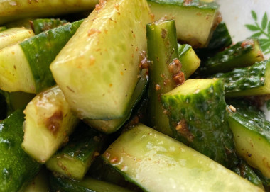 Обожаю такие огуречные салаты! А любовь к таким салатикам началась с японского салата суномоно. Теперь, когда вижу новый салат из огурцов, всегда пробую его приготовить. Так я и приготовила быстрые огурцы в соевом соусе по-корейски. Ну, очень вкусно получилось, в меру солено, в меру остро, и готовится очень быстро! Забираю себе этот салатик в копилку, однозначно буду готовить еще и не один раз.