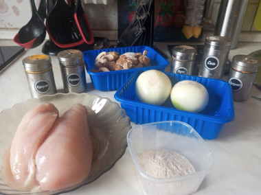 Как сделать подливу из куриных грудок с мукой и грибами? Подготовьте для этого необходимые ингредиенты. Грибы я буду брать шампиньоны, но их вполне можно заменить на любые другие, которые вам нравятся. Куриные грудки берите без костей. Тщательно ополосните их в проточной воде и обсушите бумажными полотенцами, чтобы удалить лишнюю влагу.