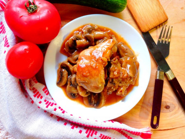 На основе рецепта подливы из куриных грудок с мукой и грибами я приготовила кролика.