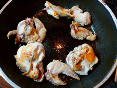 Тушку я разделила на порционные кусочки. Обжаривала их на среднем огне в течение 20 минут. Все остальные действия я сделала согласно рецепту.