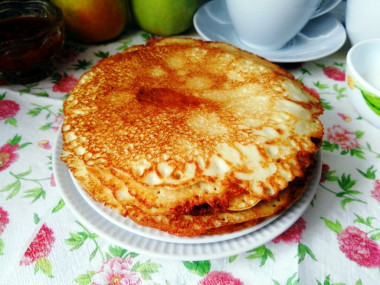Молоко: кефир, ряженка (дадут легкую кислинку и пышность), вода или растительное молоко.