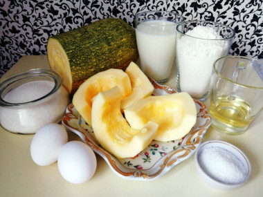 Подготовьте продукты. Кабачки подойдут любые, и молодые, и зрелые. Молоко - любой жирности. Муки может понадобиться больше или меньше указанного количества. Подробнее о свойствах муки читайте в конце рецепта. Все будет зависеть от сочности кабачка. Лучше, если все продукты будут комнатной температуры, тогда тесто замешается быстрее и качественнее.