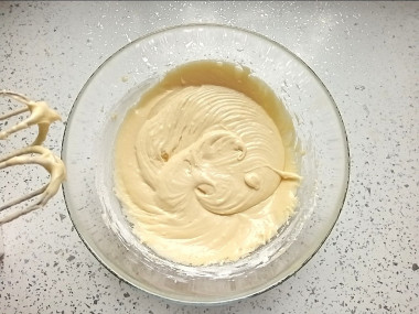 По одному добавьте яйца, каждый раз взбивая массу. В результате должна получиться пышная однородная смесь.