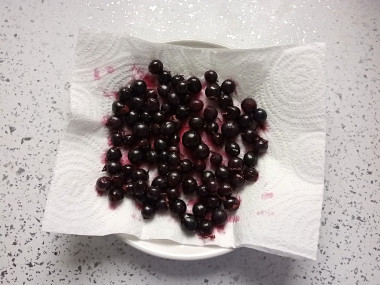Ягоды были замороженные. Заранее вынула их из морозилки и выложила на бумажное полотенце, чтобы впитался сок.