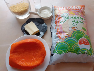 Калорийность продуктов: Молоко, Тыква, Пшено, Сахар, Сливочное масло, Соль