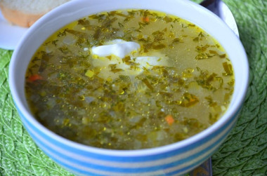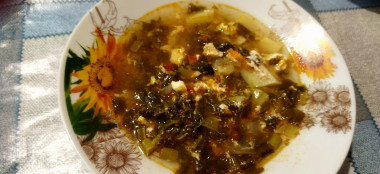 Когда еще, если не летом нужно готовить зелёный борщ. Летом у меня борщ с капустой " уходит в отпуск" и только лишь готовлю зелёный борщ. Готовится просто, к тому же всегда практически готовлю по такому рецепту без вымудривания. Относительно яиц периодически чередую - когда могу добавить уже вареные измельчённые в борщ или же просто добавить яйца и они в процессе варки сварятся самостоятельно. Очень вкусно получается, ароматно и по- летнему. Приятного аппетита!