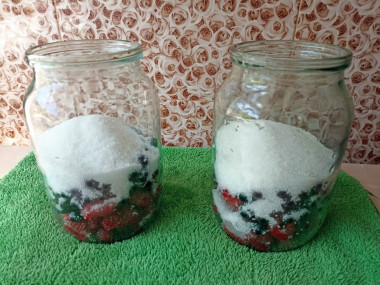 Насыпьте в банки сахар и добавьте по щепотке лимонной кислоты. Количество сахара можно немного увеличить по своему вкусу.