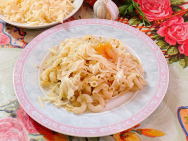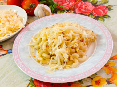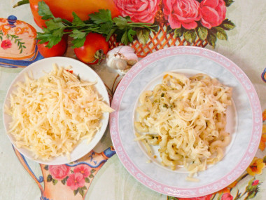 Затем разложите макароны по тарелкам и подавайте к столу. Перед подачей посыпьте их натертым на мелкой терке твердым сыром. Приятного аппетита!