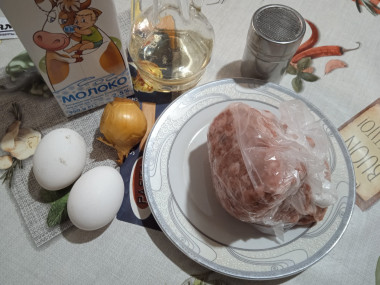 Поскольку готовила я рано утром, когда ещё все спали, то включать шумную мясорубку я не стала. Решила выйти из положения, просто очень мелко нарезав мясо. Не фарш, конечно, но всё же. Все остальные действия я сделала согласно рецепту. Готовила из расчёта на четыре порции.