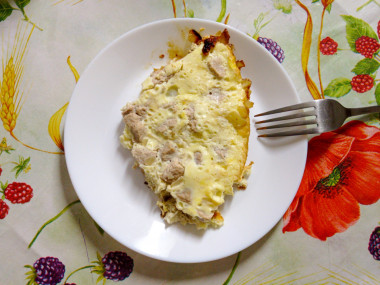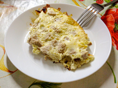 Получилось замечательно. Просто и вкусно. С фаршем, конечно, получилось бы гораздо сочнее. Домашние остались довольны. Все-таки омлет с мясом гораздо сытнее, чем с колбасой.