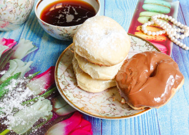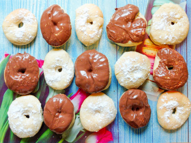 Перед подачей вы можете посыпать пончики пудрой или покрыть глазурью. Приятного аппетита!