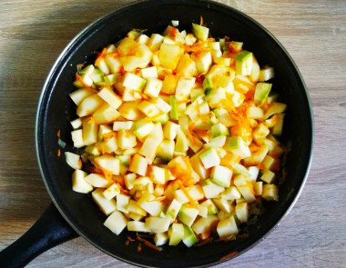 Имейте в виду, что от того, как Вы измельчите морковь, зависит и конечный результат в этом блюде: натертая морковь в процессе термической обработки превратится в кашицу и равномерно смешается с остальными ингредиентами, нарезанная соломкой или брусочками сохранит свою форму.