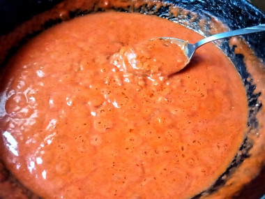 В отдельном стакане смешайте воду с томатной пастой и сметаной. Воду берите фильтрованную. Вода из под крана может испортить вкус готовой подливы. Количество воды можно немного изменить в зависимости от того сколько и какой густоты подливу вы хотите получить.