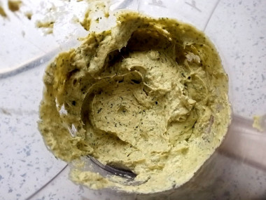 Укроп помойте в проточной воде и обязательно тщательно обсушите бумажным полотенцем. Ведь попавшая влага ускорит процесс порчи продукта. Измельчите его ножом и добавьте в чашу блендера. Если не любите укроп, замените его на петрушку или любую другую зелень. Немного перемешайте блендером и селедочное масло готово.
