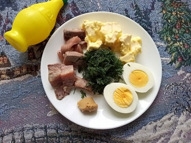 Калорийность продуктов: Селедка, Горчица готовая, Сливочное масло, Яйца, Лимонный сок, Укроп