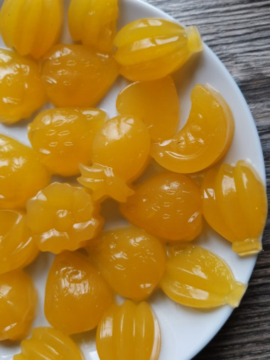 И ещё... налила в тыкву много воды и остался у меня бульон. И так мне жалко его выливать! А он такой приятненький, сладенький... Я возьми и насыпь в него агар-агара... в итоге - тарелка нежного мармелада бонусом к вкусной запеканке!