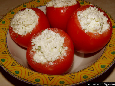 Нафаршированные помидоры уберите на 10 минут в холодильник. При подаче на стол украсьте каждую половинку зеленью. приятного аппетита!
