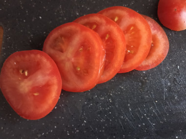 Помидоры выбирайте сочные, но плотные. Мягкие плоды плохо держат форму, в процессе нарезки и приготовления они расползутся в бесформенную массу и испортят внешний вид блюда.